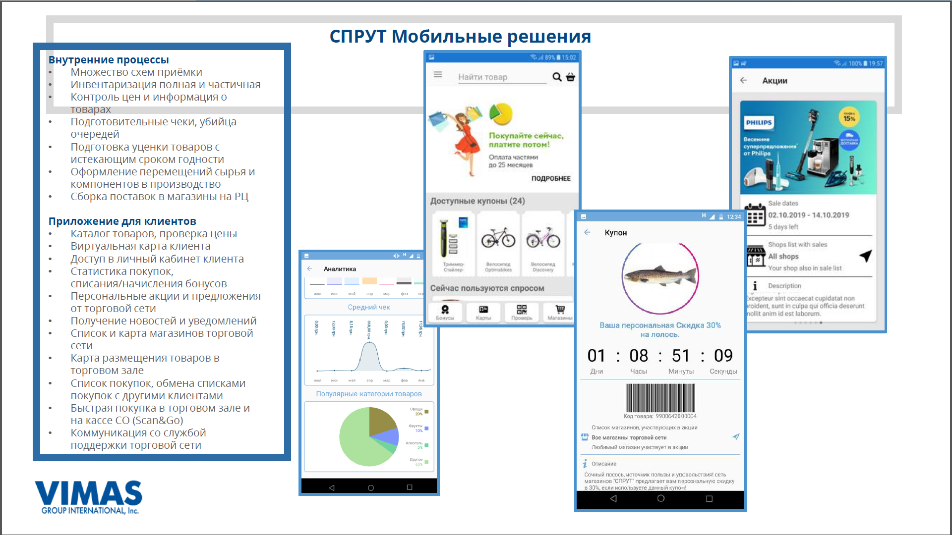 С выпуском первой версии программы СПРУТ Мобильное приложение покупателя торговой сети (Android,iOS) получила свое начало новая ветка развития функциональности ПС СПРУТ подсистема СПРУТ Mobile, в которую входят мобильное приложение покупателя и множество других приложений.